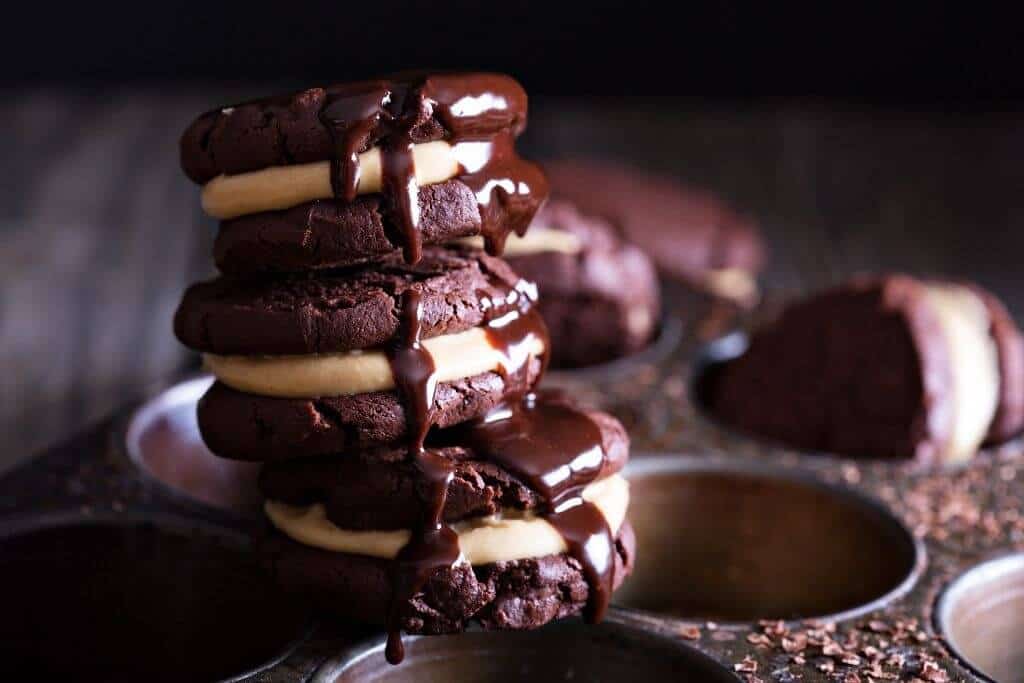 Bild: Chocolate brownie cookies with peanut butter filling, 316178285, Urheber: Elena Veselova